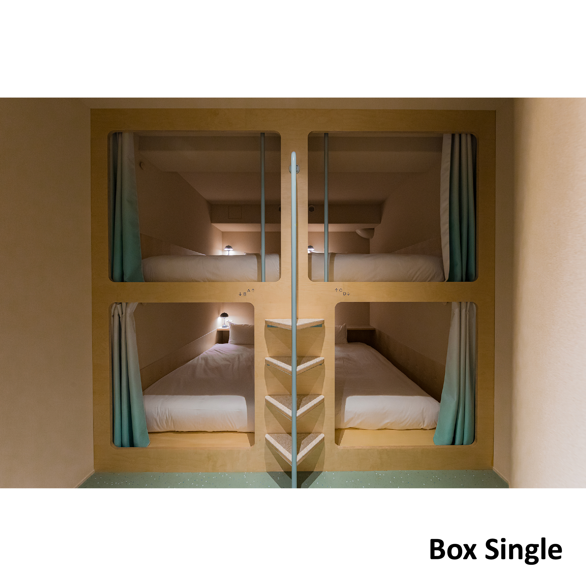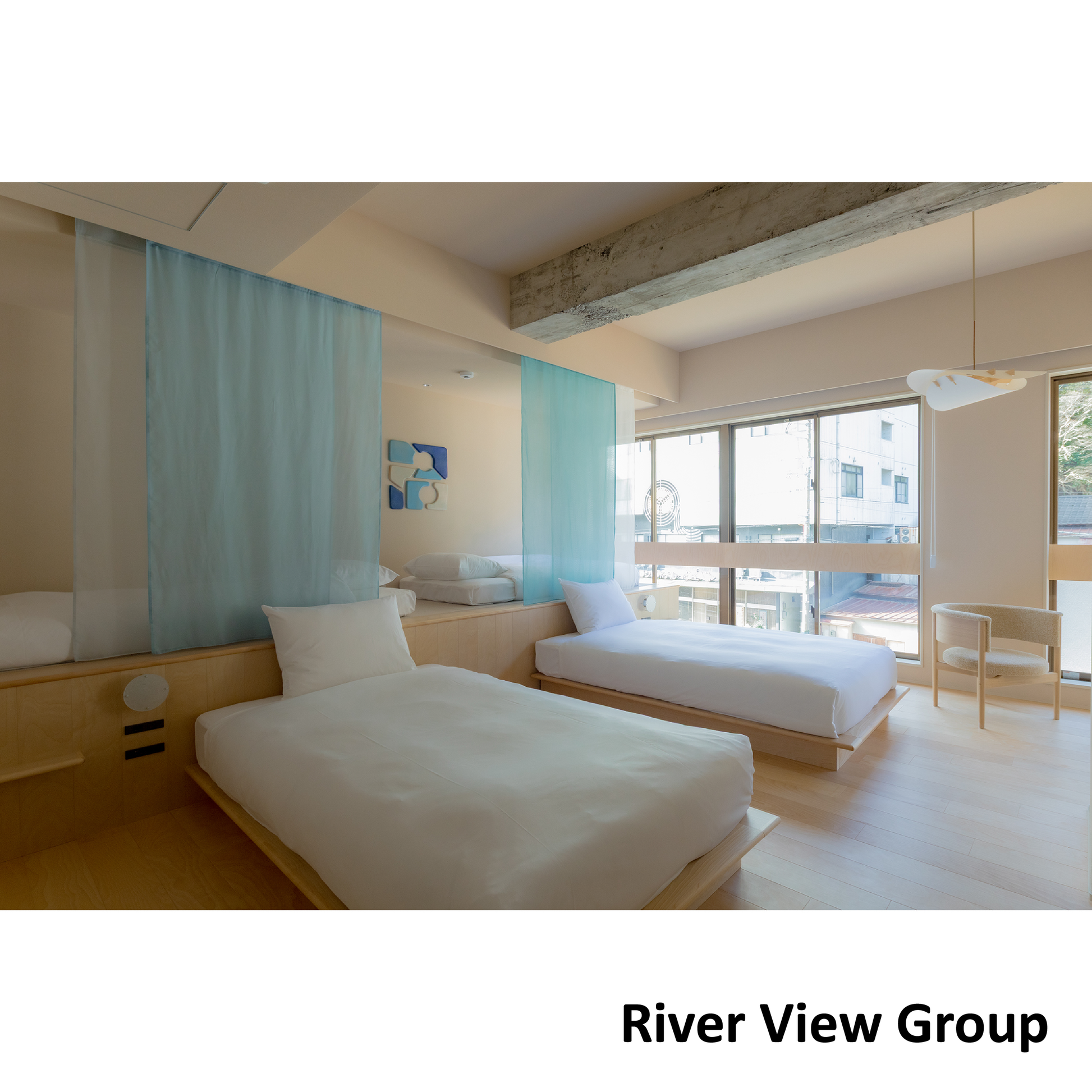 <全プラン共通> 1. ドミトリータイプ/Box single・男女別4名1室(共同トイレ/共同シャワー) 2. ツインorグループタイプ/Compact TwinRiver ・View Compact・ TwinRiver View ・TwinRiver View Groupのいずれかで相部屋(室内トイレ・シャワーブース) 3. 個室タイプ/Compact Double・River View Suiteのいずれか(室内トイレ・シャワーブース) ※2、3各カテゴリー内のお部屋タイプはお選びいただけません。あらかじめご了承ください。